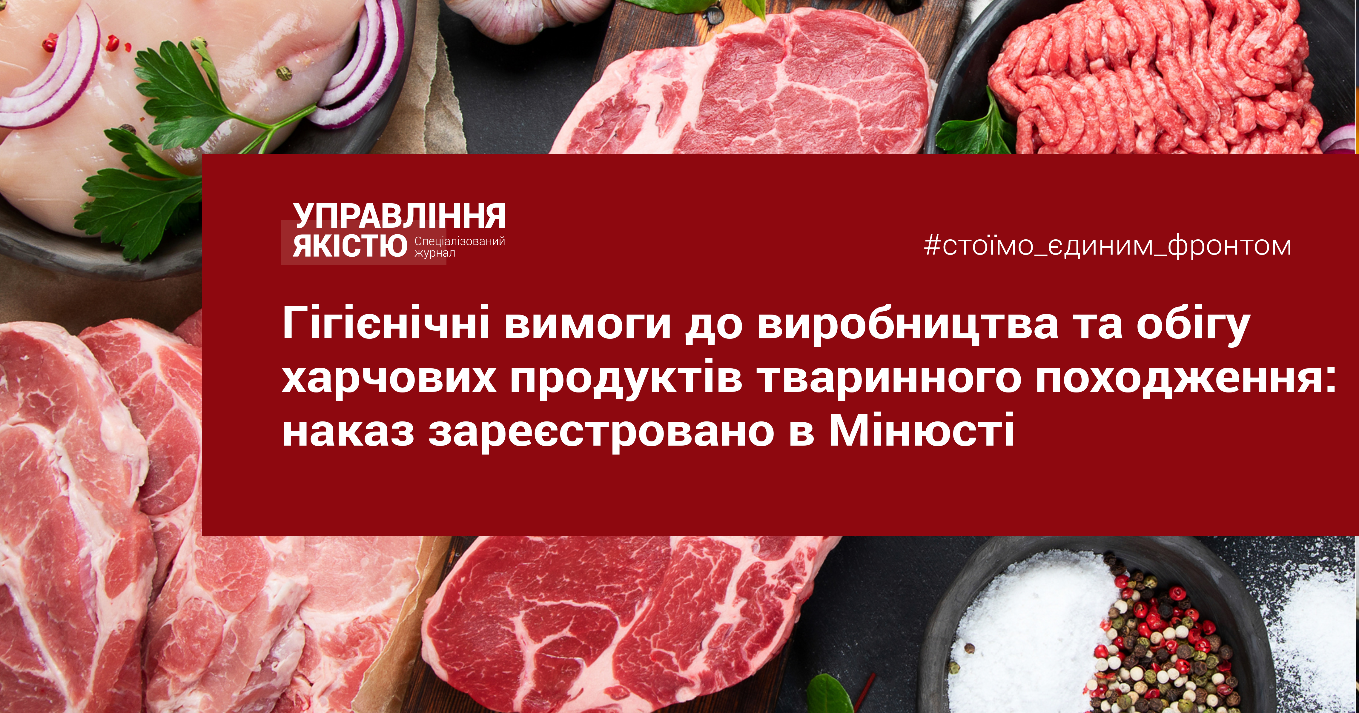 15 листопада Міністерство юстиції України зареєструвало наказ Міністерства аграрної політики та продовольства України від 20 жовтня 2022 року № 813, яким затверджено Гігієнічні вимоги до виробництва та обігу харчових продуктів тваринного походження. Документ імплементує вимоги Регламенту Європейського Парламенту та Ради ЄС (№ 853/2004 від 29 квітня 2004 року) і дає змогу виконати норми ЗУ «Про основні принципи та вимоги до безпечності та якості харчових продуктів».