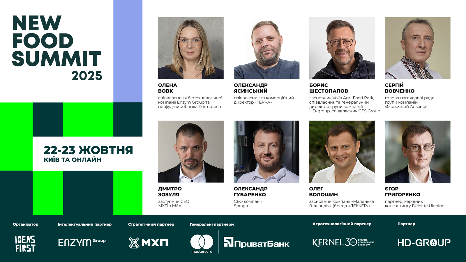 Проведення події підтримують такі ключові гравці ринку, як Enzym Group, МХП, Mastercard, ПриватБанк, Kernel та інші.