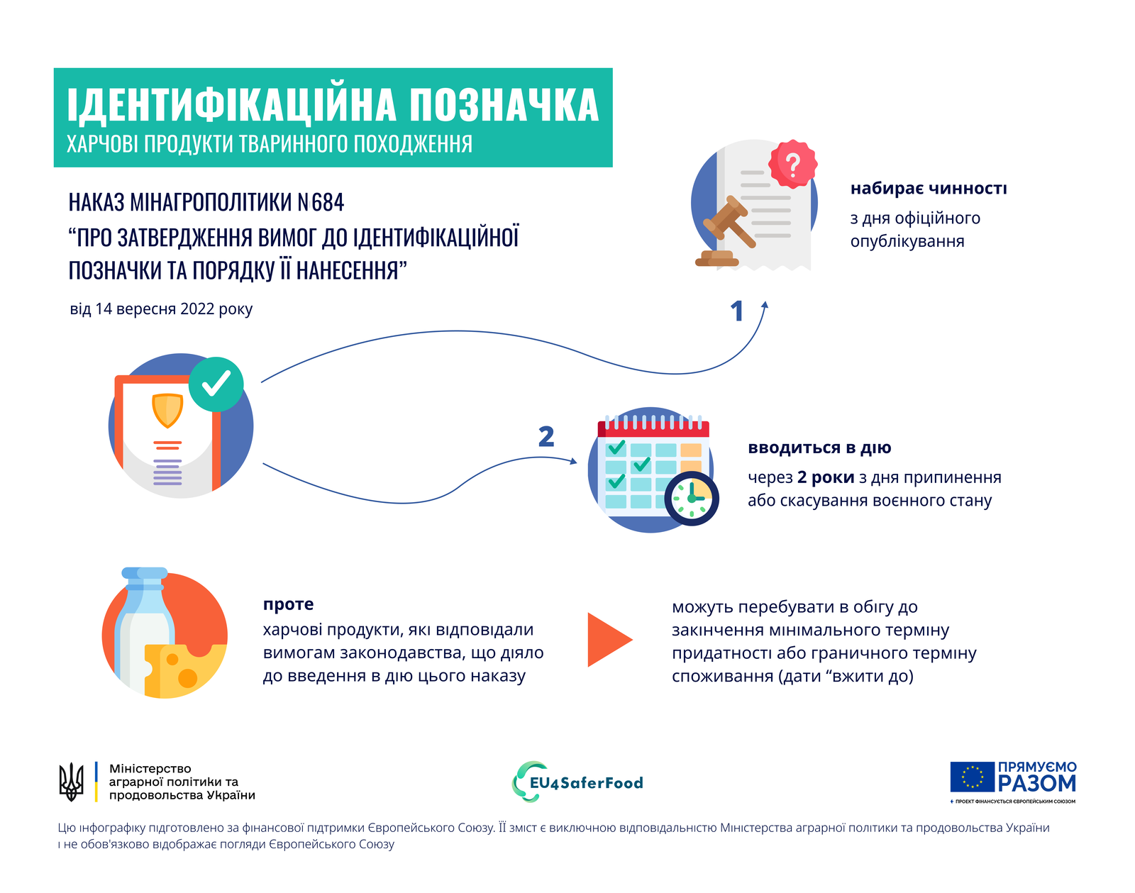 29 вересня 2022 року Міністерством юстиції України зареєстровано наказ Мінагрополітики від 14 вересня 2022 року № 684, яким затверджено Вимоги до ідентифікаційної позначки та порядку її нанесення.