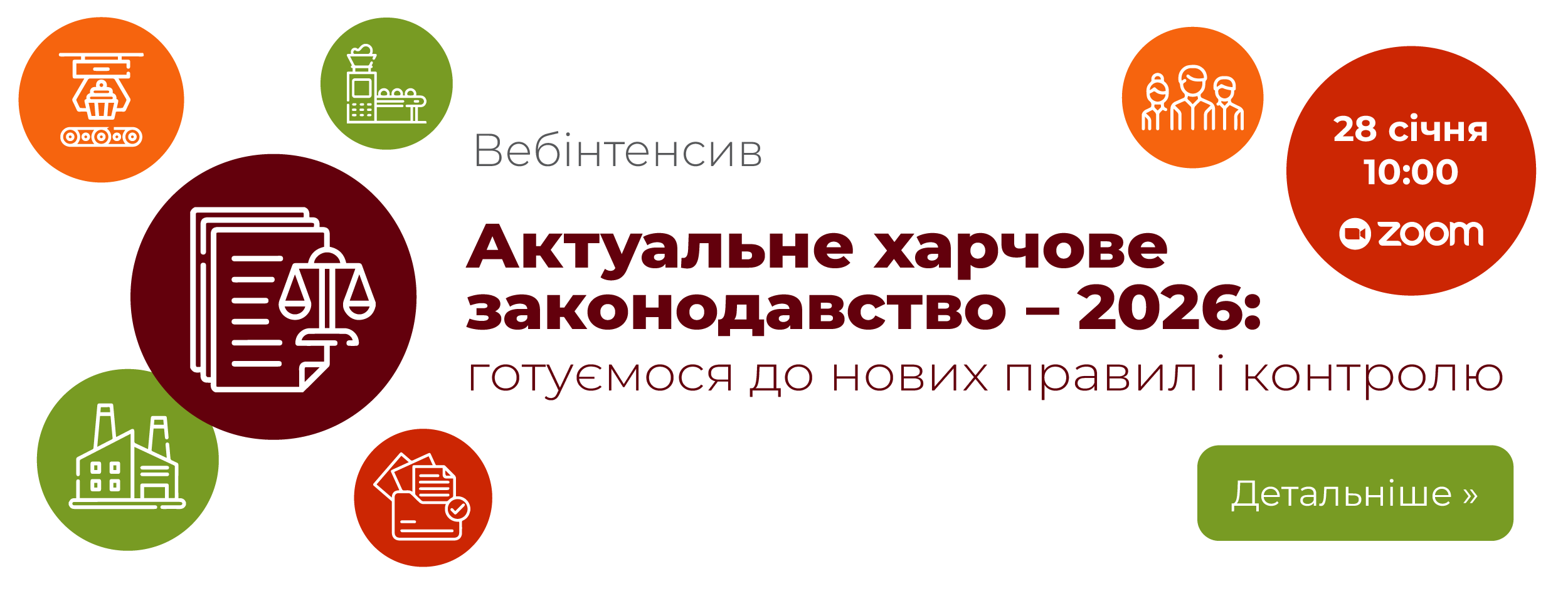 А також запрошуємо представників харчової промисловості розпочати новий професійний рік із аналітики галузевого законодавства, відвідавши 28 січня вебінтенсив: