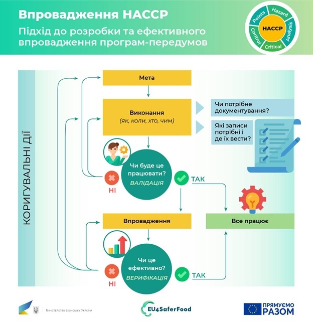 - застосування програм-передумов системи НАССР передбачає розробку та впровадження операторами ринку процедур для підтримання гігієни в усьому харчовому ланцюгу, які необхідні для виробництва та постачання безпечних харчових продуктів для споживання людиною, а також правила поводження з харчовими продуктами;