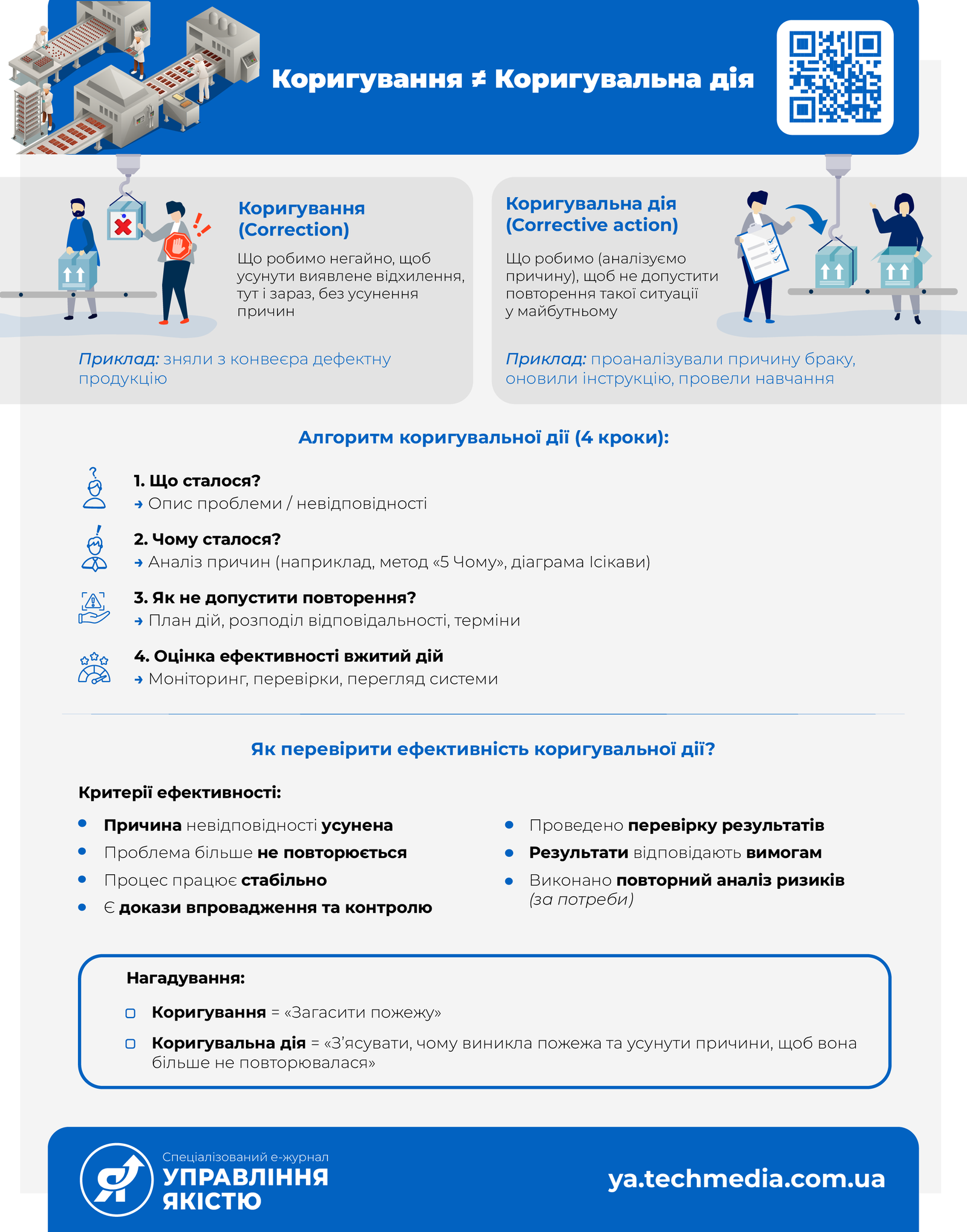 Шпаргалка: Коригування ≠ Коригувальна дія